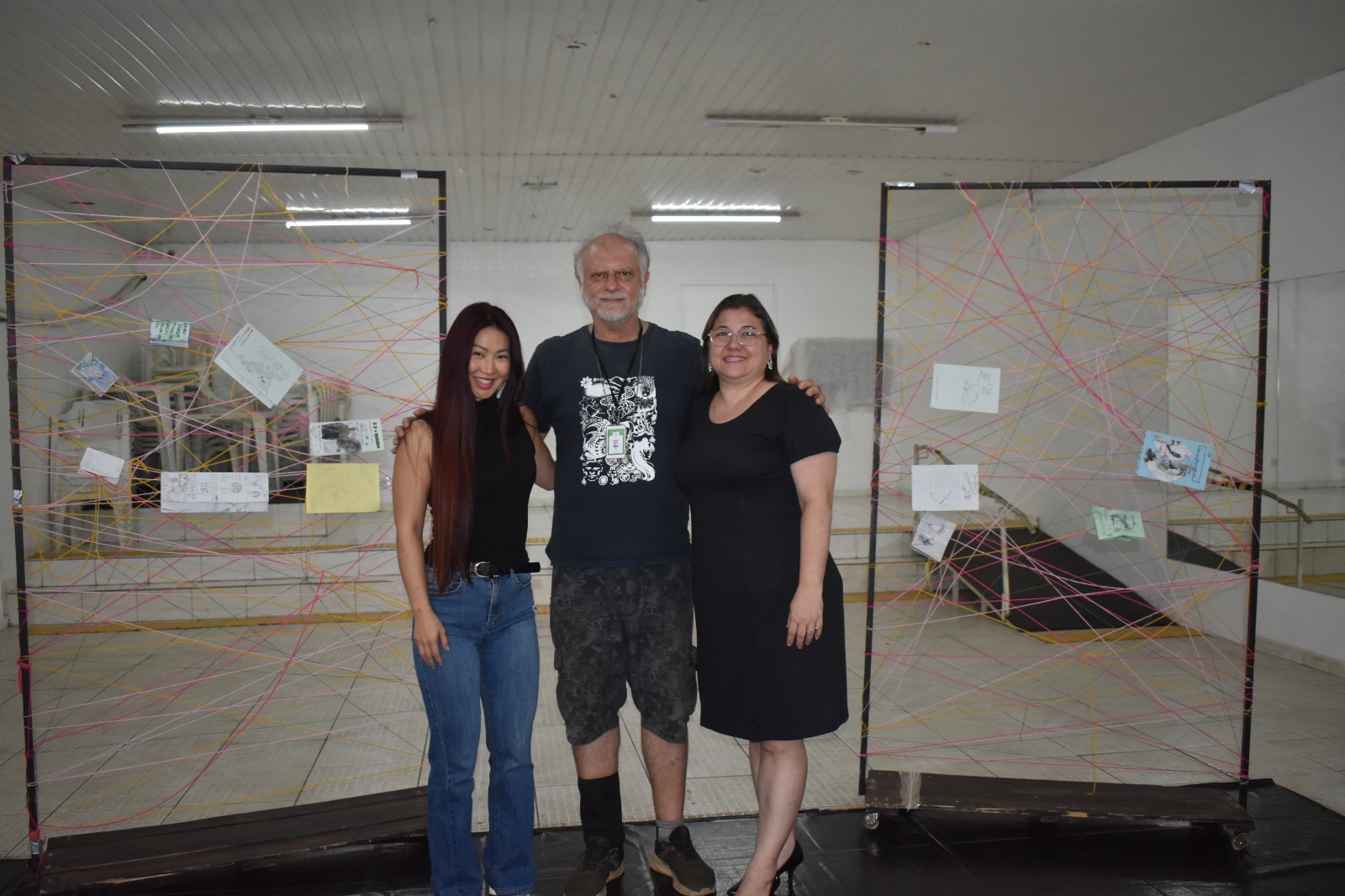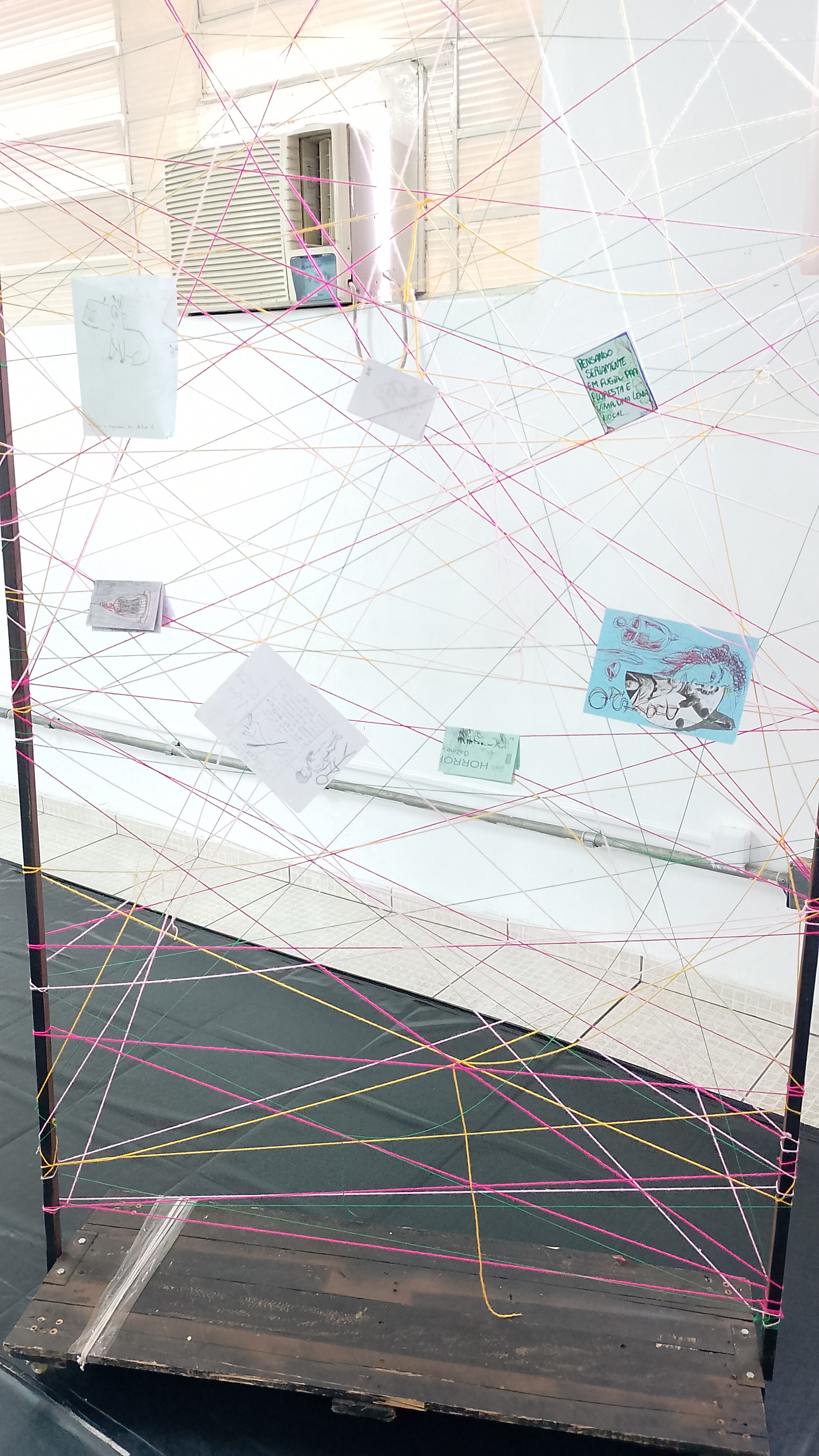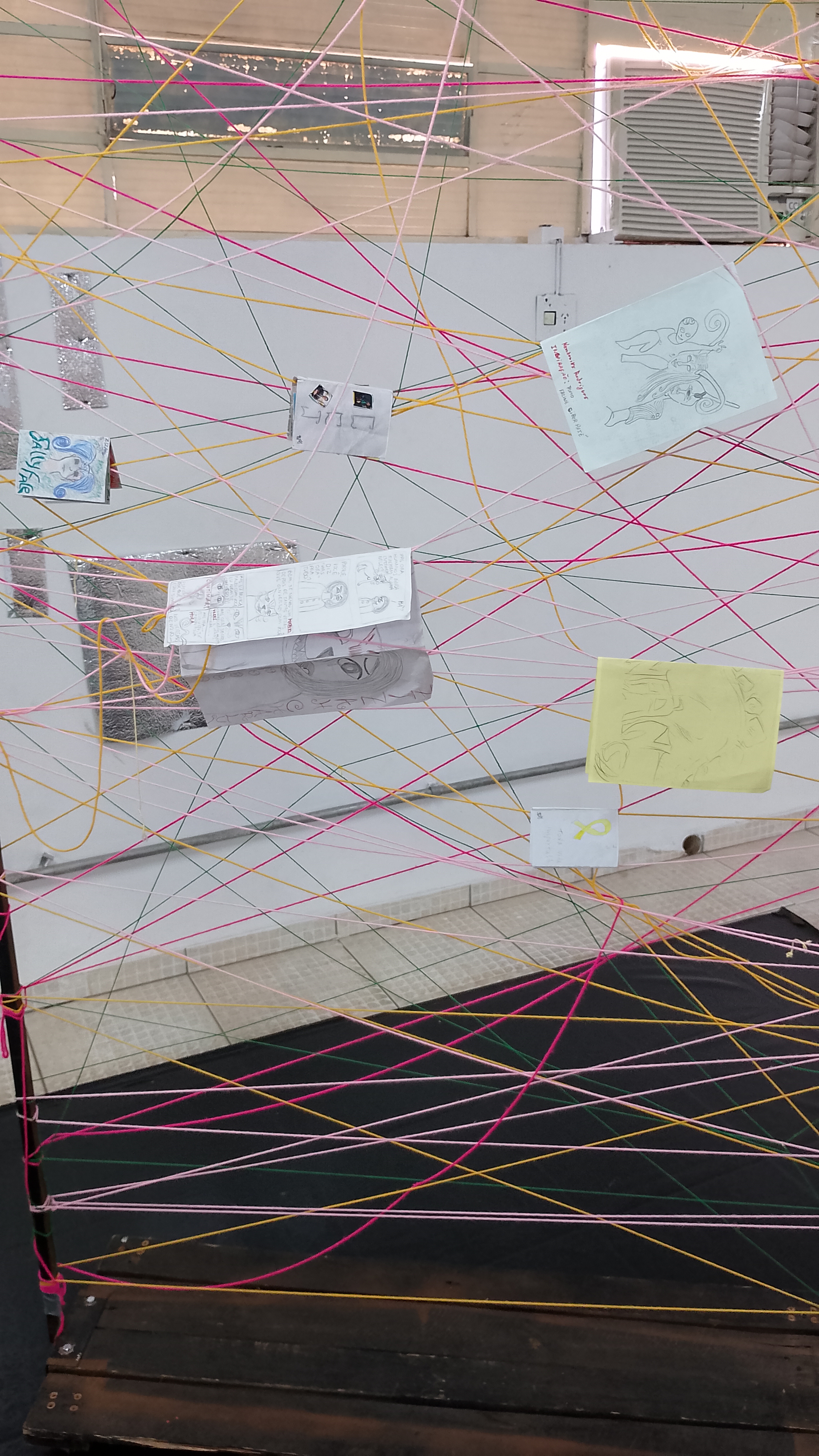 Foto 8: Quadros com barbantes coloridos contendo os fanzines dos alunos.