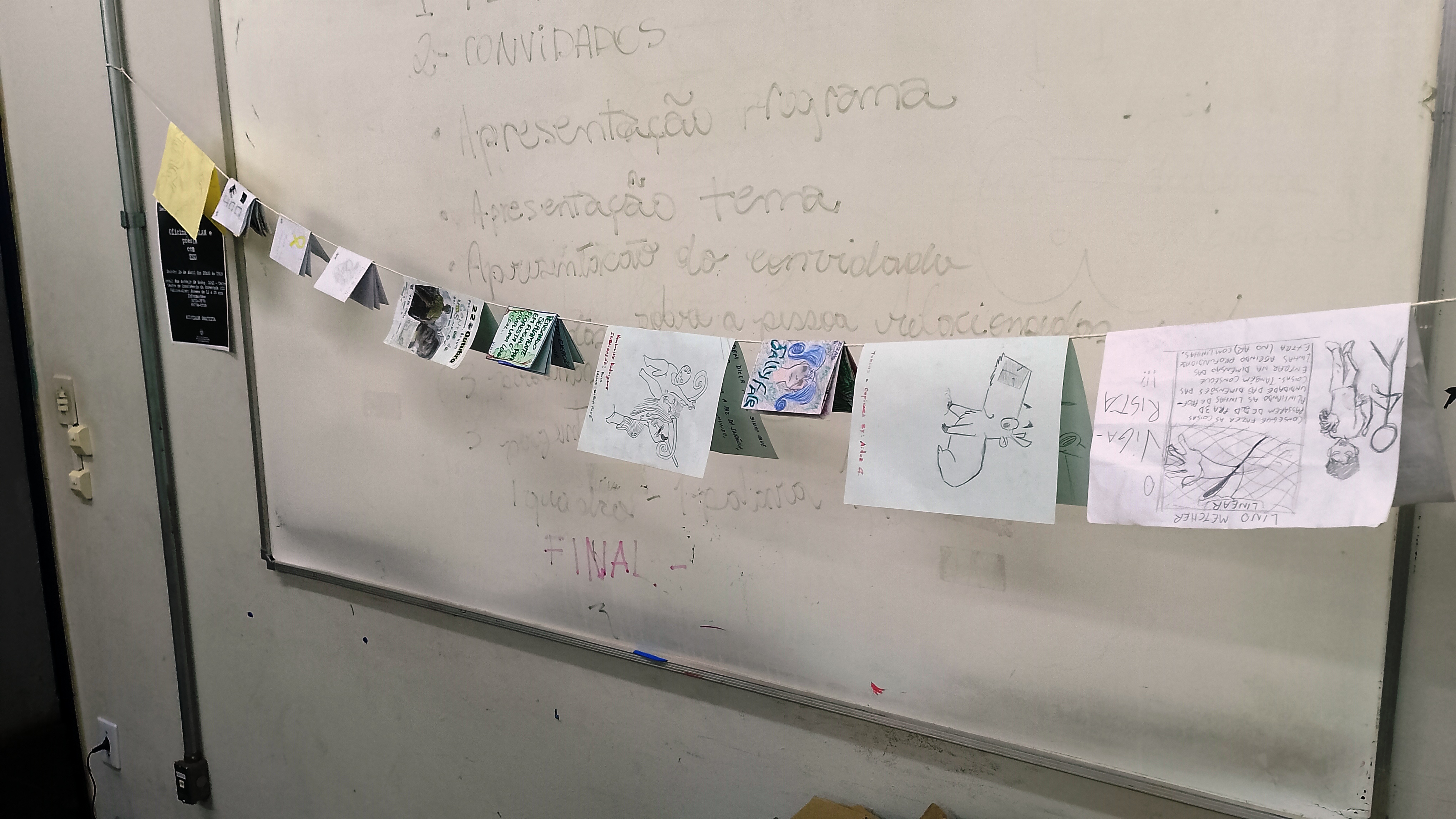 No caso, este foi um curso que promoveu a integração das HQs com os fanzines e no dia 11/11/2025 o curso foi finalizado com uma rápida exposição dos zines na própria sala de aula do CCJ.