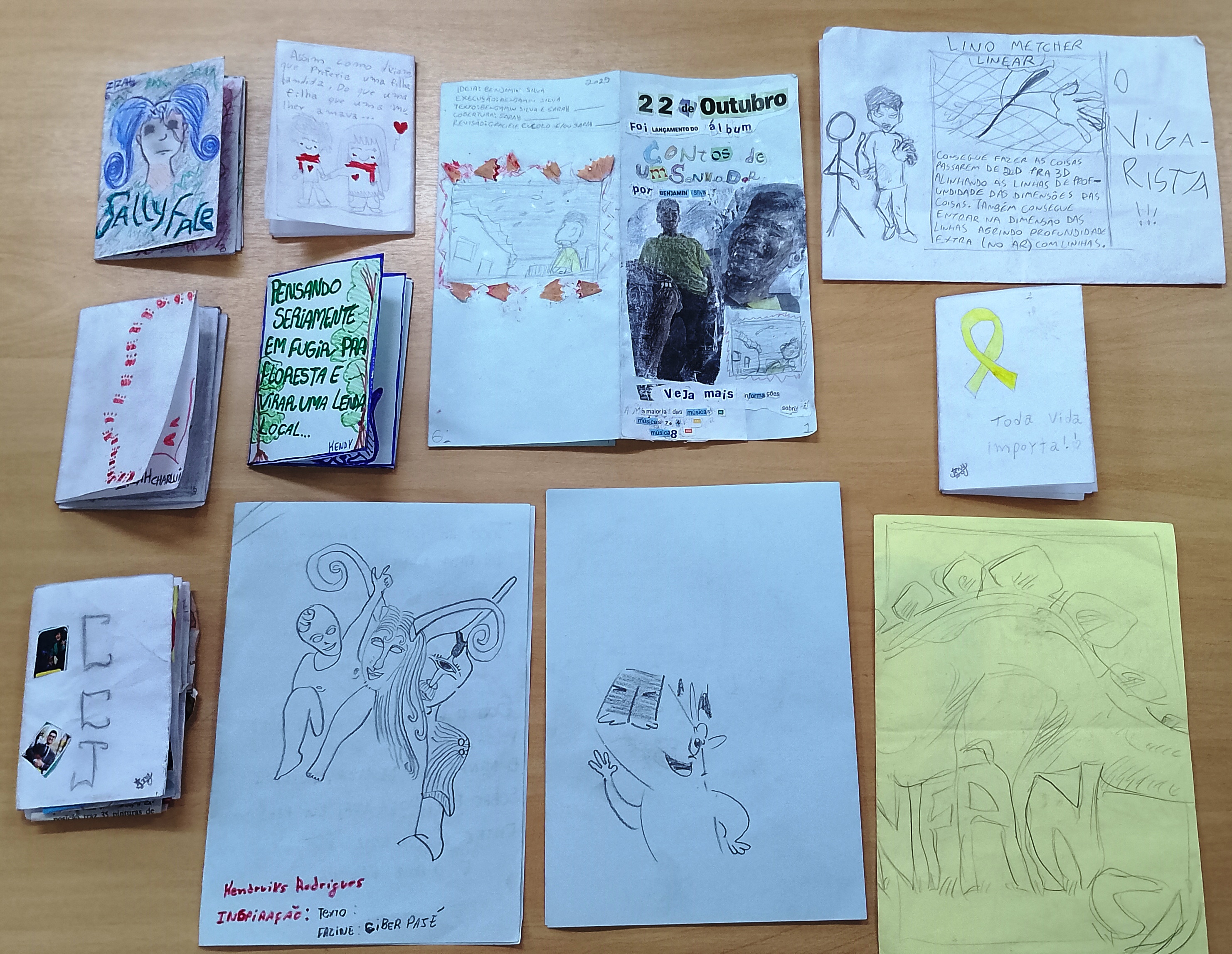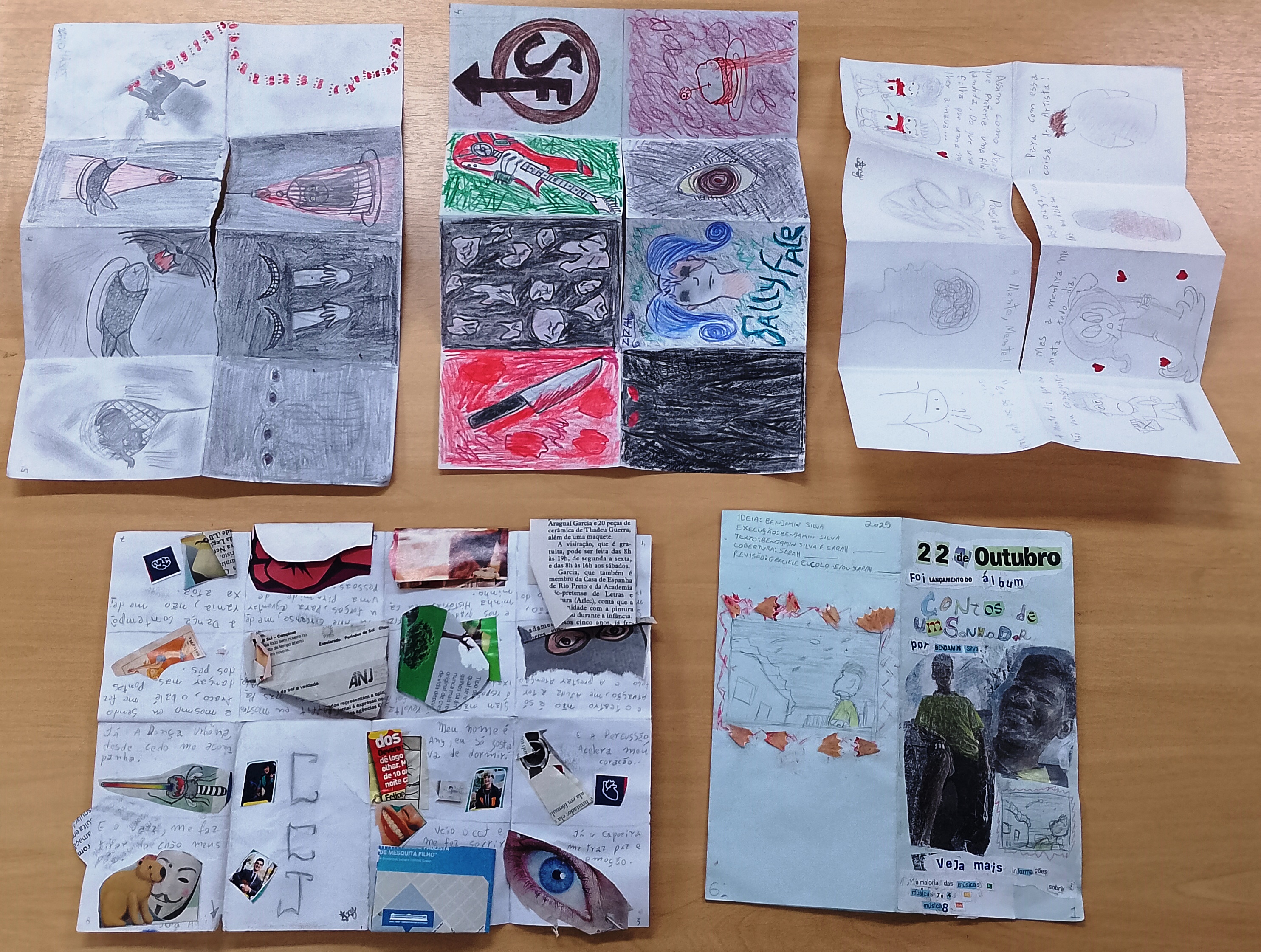 Fotos 5 e 6: alguns dos fanzines produzidos durante o curso.