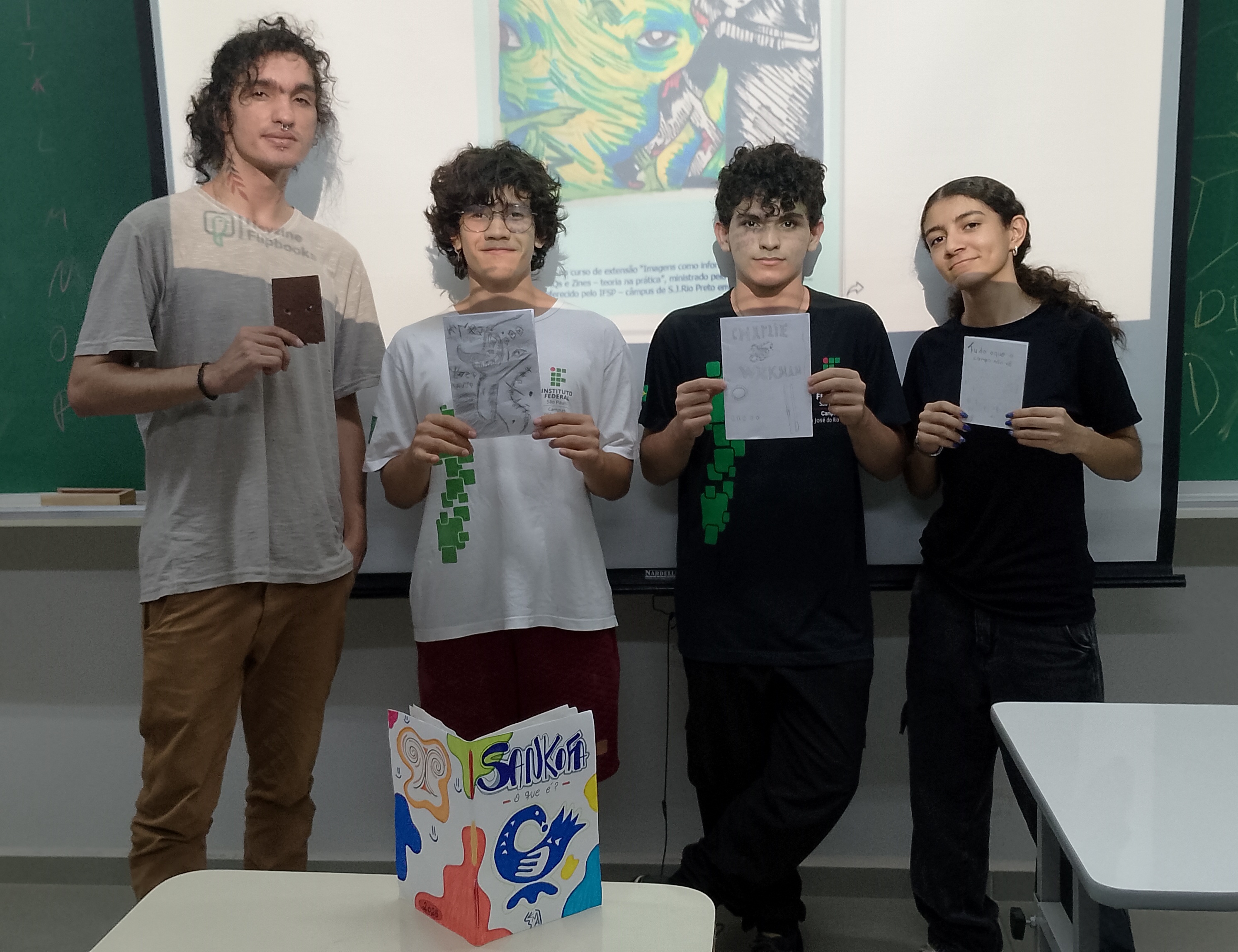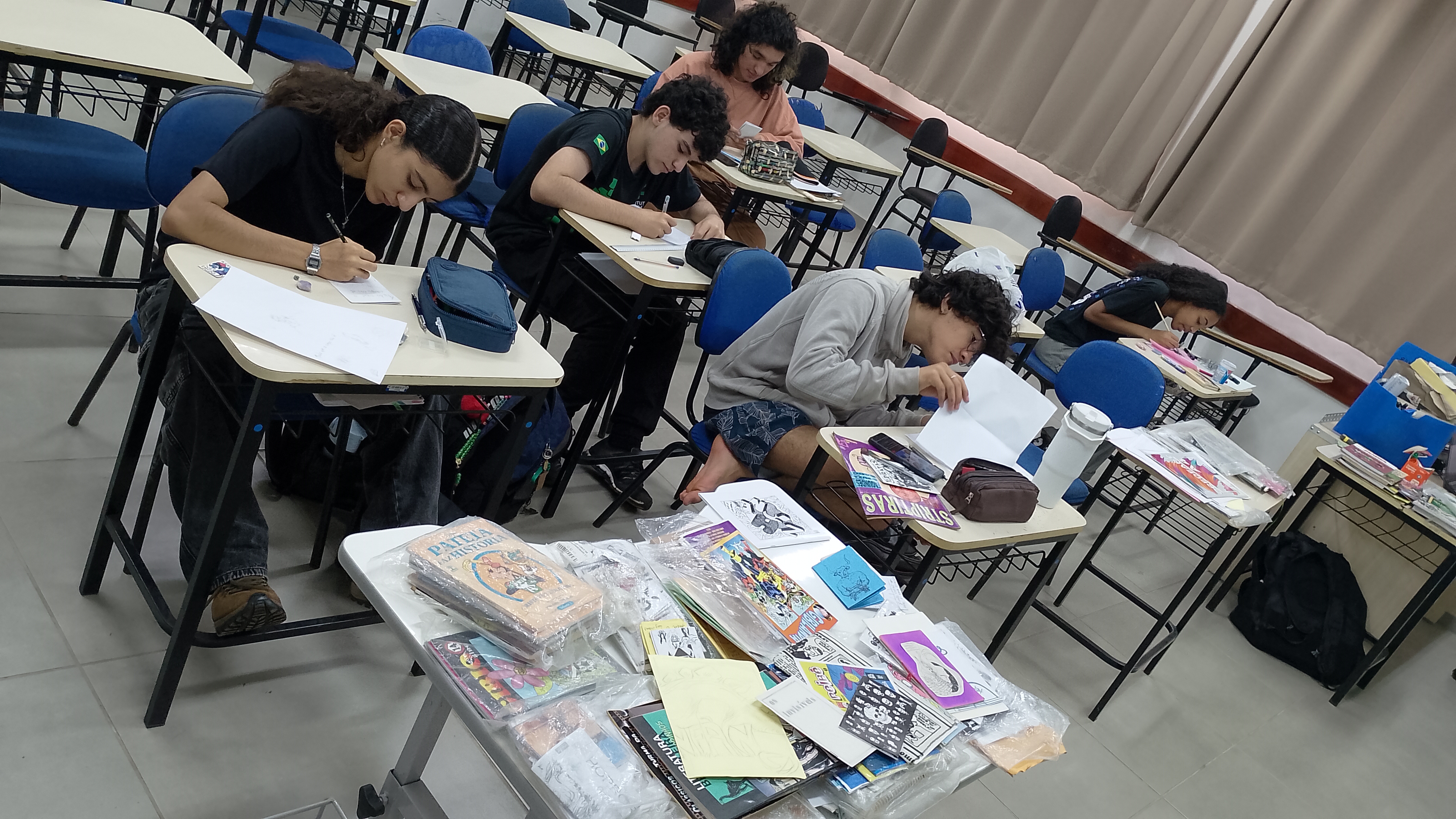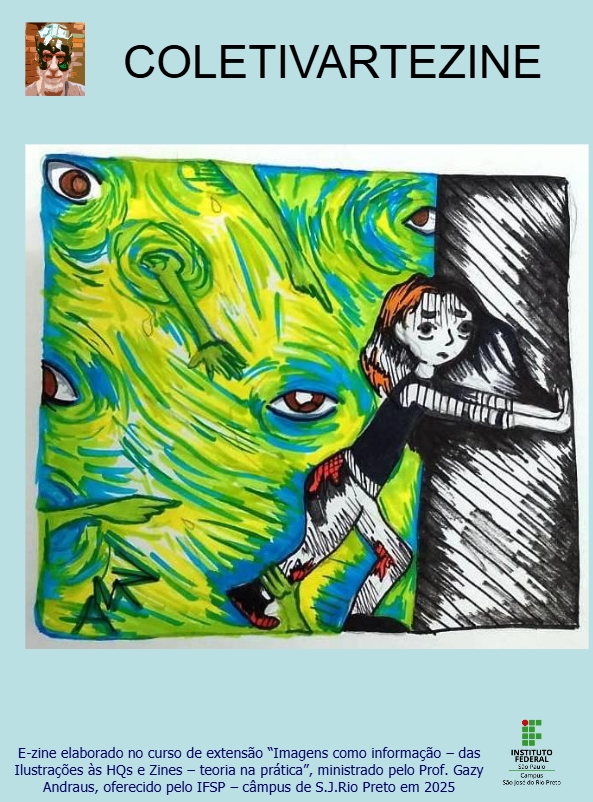 O curso “Imagens como informação – das ilustrações às HQs e Zines – teoria na prática”, realizado no 2º semestre de 2025 no IFSP, campus de São José do Rio Preto, permitiu ao alunado – oriundo da comunidade e também aberto aos alunos do próprio IF – um desenvolvimento paulatino de ilustrações, desenhos, tiras, cartuns, charges e histórias em quadrinhos.