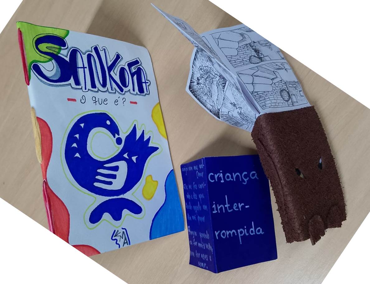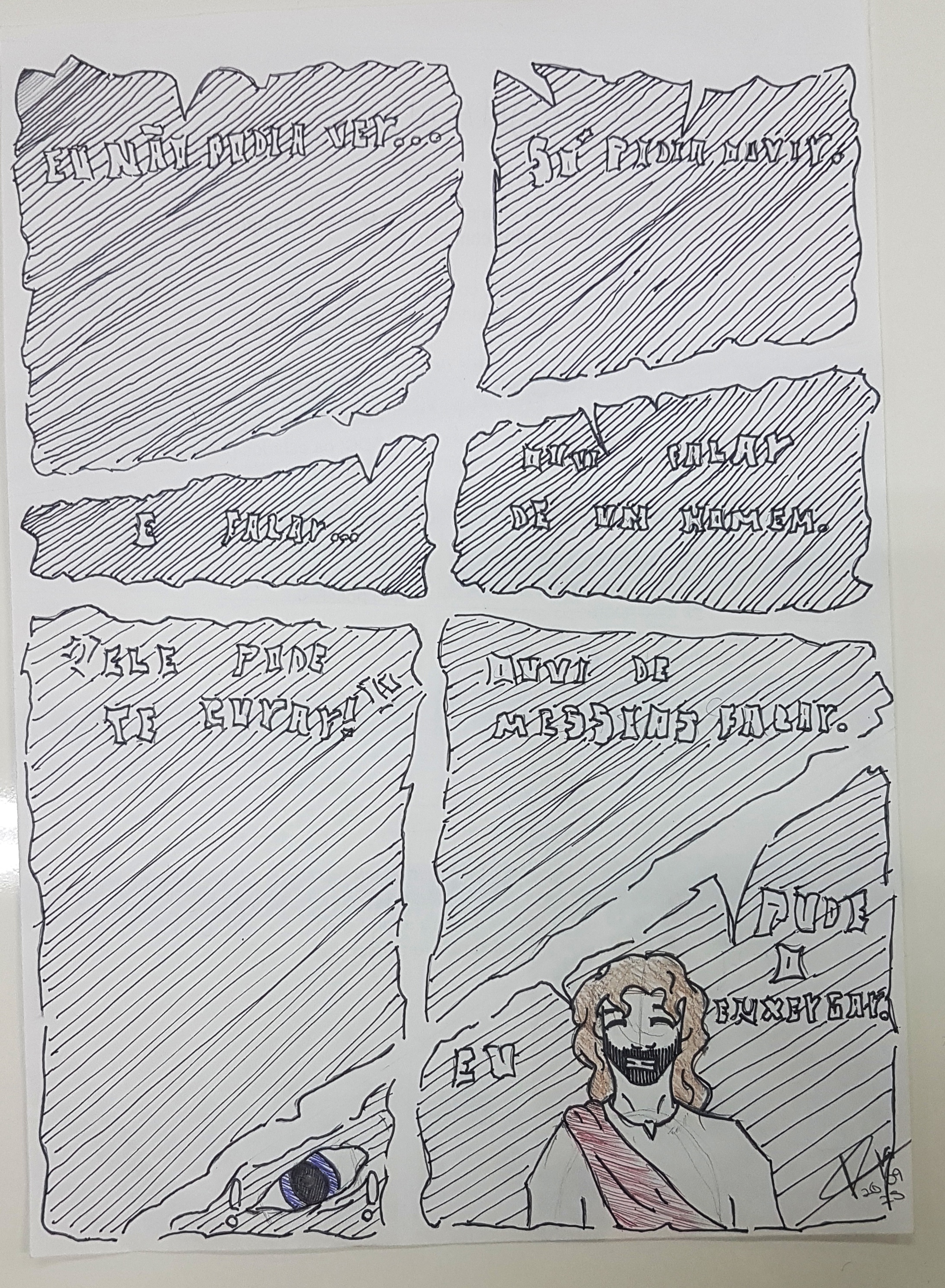 A etapa seguinte à produção de seus desenhos, ilustrações, tiras em quadrinhos e HQs, incluindo uma página de quadrinho poético de suas artes, foi a de elaborarem seus fanzines contendo o que foram criando durante o curso.