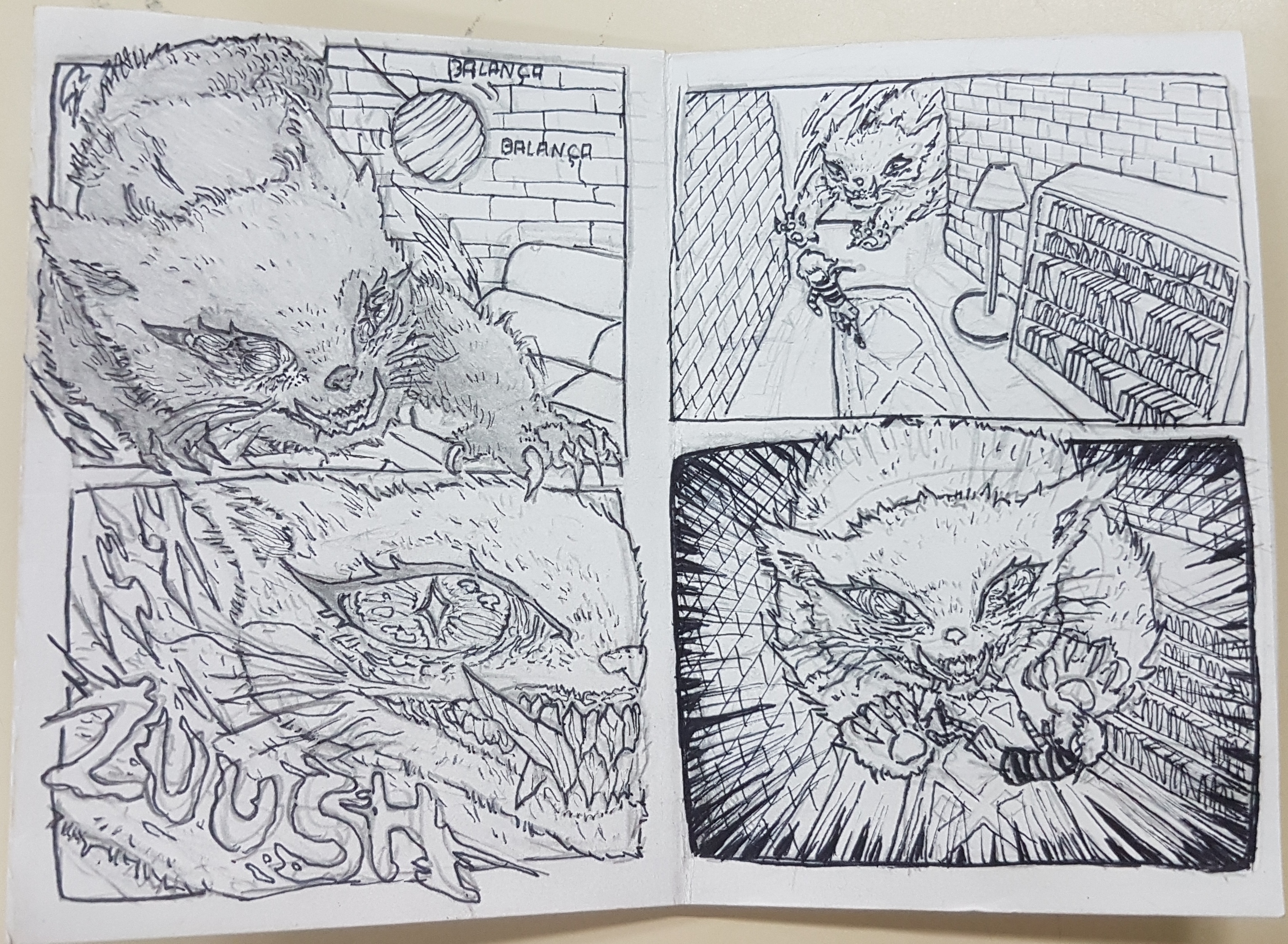 Imagens 5 a 7: artes de Davi F. de Castilho, João G. Guerreiro e ilustração em nanquim de Raffaele Fidelis.