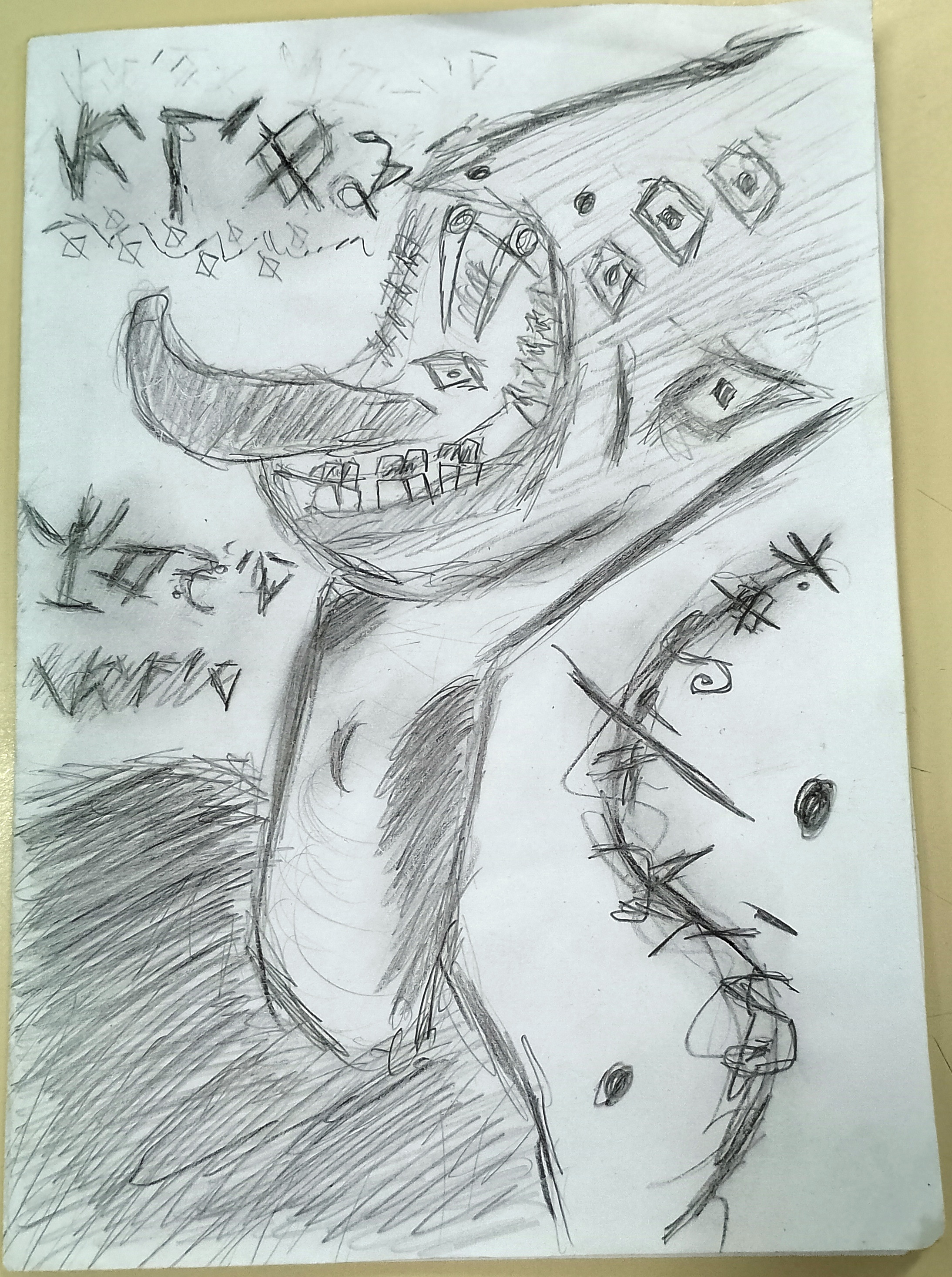 Imagens 1 e 2: a produção artística dos alunos durante o curso (houve até a audição de música para criarem as artes).