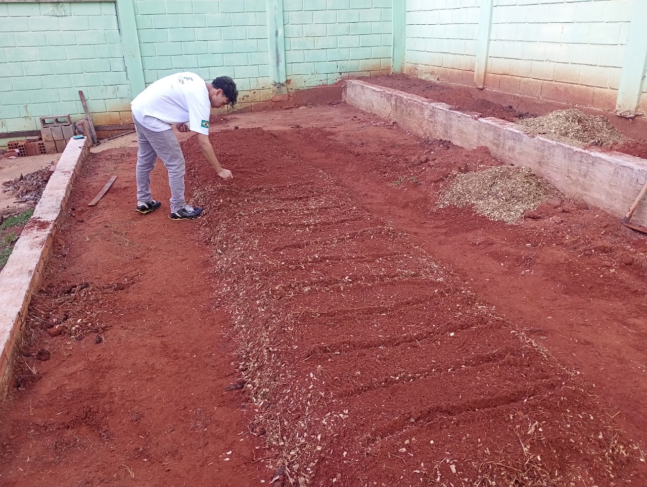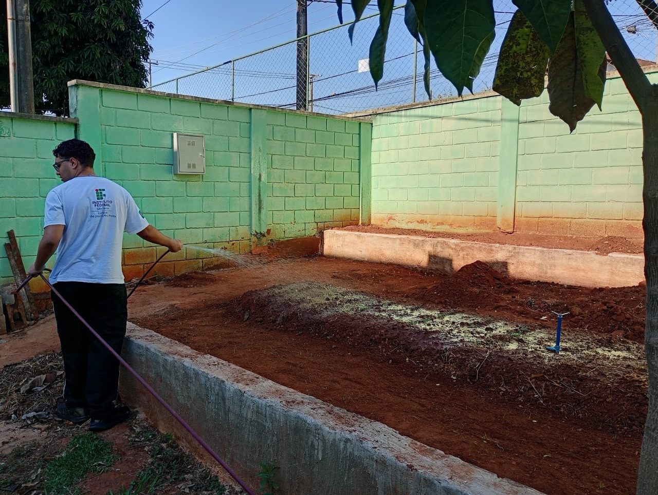 Com muito trabalho do aluno bolsista Gabriel Francisco  e voluntários Iasmin, Daniel, Guilherme, Matheus e outros que participam de etapas do projeto, entre algumas atividades que destacamos foi realizada a limpeza do terreno para dar espaço à preparação dos canteiros com a mistura do biofertilizante necessário para a produtividade da horta, nesta etapa agradecemos a participação dos Técnicos Administrativos Alexandre Neves e Tatiana Arantes essenciais para aquisição deste insumo doados pela Maria Bessa.